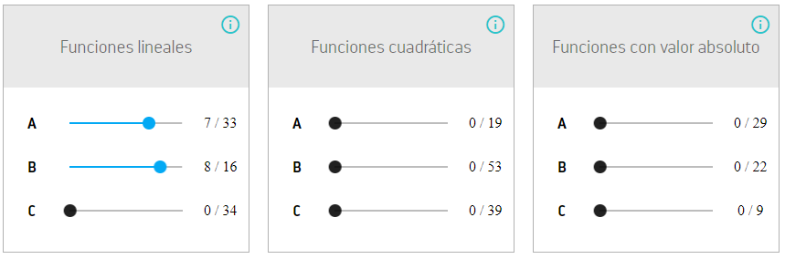 En cada subtema de nuevo hay un botón "i". Después de hacer click sabrás qué tipos de preguntas pertenecen a cada parte.
