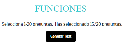 Después de elegir las preguntas haz click en “Generar test”. ¡Ojo! El botón no estará activo si has elegido menos de 1 pregunta o más de 20. Después de hacer click en “Generar test” tendrás un test según tus necesidades.