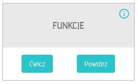 Na dalszą stronę aplikacji dotrzesz po naciśnięciu Ćwicz (test na miarę) lub Powtórz (podsumowujący test). Jeżeli naciśniesz Ćwicz, dotrzesz na stronę z listą podobszarów i części do Tobą wybranego obszaru. Jeżeli wybirzesz Powtórz nie będziesz miał możliwości wybrania konkretnego podobszaru a jedynie liczbę pytań dla każdej części z wybranego obszaru.