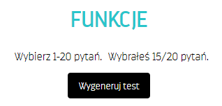 Po dokonaniu wyboru naciśnij na przycisk „Wygeneruj test”. Uwaga, ten przycisk nie jest aktywny, o ile wybrałeś mniej niż 1 pytanie lub więcej niż 20. Po naciśnięciu “Generate test“ będzie według Twoich wymagań wygenerowany test.