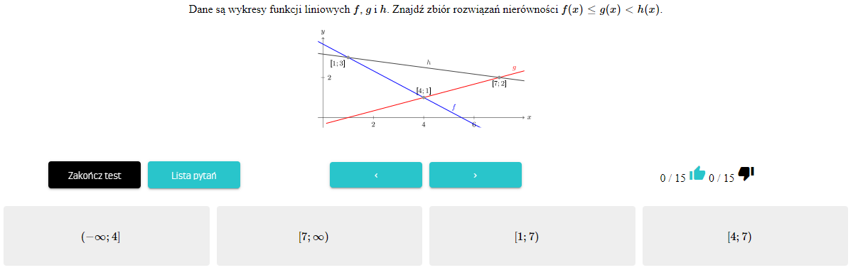 Rozwiąż problem i wybierz odpowiedź. Natychmiast się dowiesz, czy odpowiedziałeś poprawnie, czy nie. Kciuk w górę oznacza właściwą odpowiedź, a kciuk w dół oznacza złą odpowiedź. Wybrana odpowiedź jest otoczona czarnym prostokątem.