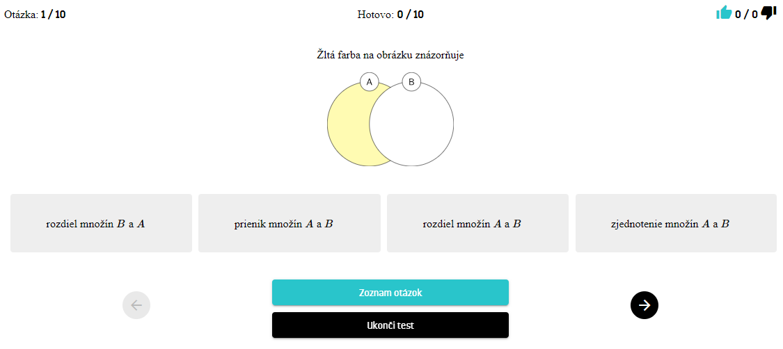 Tlačítkom ← z horného menu se môžeš vrátiť na výber podoblastí a vygenerovať si ďalší test.