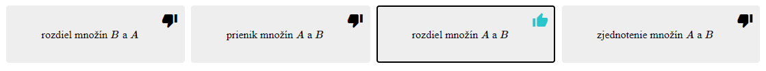 Kliknutím na políčko s odpoveďou okamžite získavaš spätnú väzbu. Palec hore znamená správnu odpoveď a palec dole nesprávnu odpoveď. Odpoveď, ktorú si si zvolil, je ohraničená.